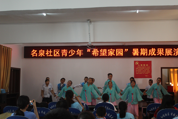 青少年“希望家园”已开班半个月了,青少年们将自己在“希望家园”里所学用歌谣、情景剧等形式表演出来,青少年们在这里成长与收获。