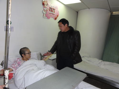 名泉社区支部书记毛永家到医院看望患重病居民刘艳华