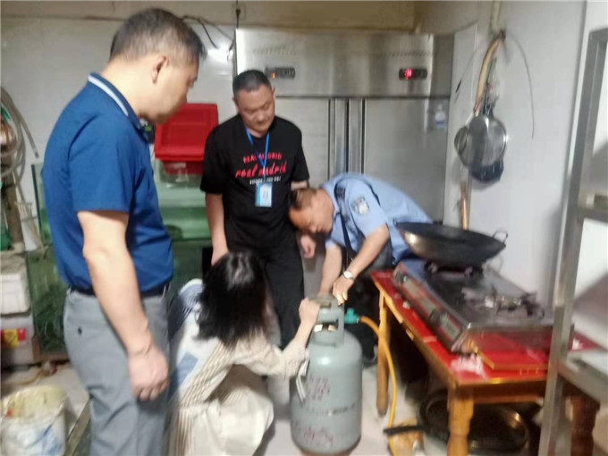 区燃专委组织各成员单位对名泉社区餐饮门店进行餐饮行业 用气安全联合执法专项排查