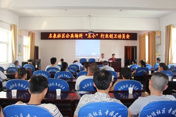 此次动员会的主要介绍“五小”行业目前现状、共性标准、分类标准以及相关法法律法规等内容,最后对“五小”行业的业主提出要求,业主要自查自纠并依法依规经营,要积极行动,为创建国家卫生城市做出应有的贡献。