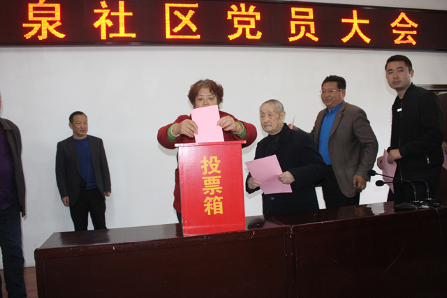 会上,主持人强调了社区党支部职数安排、推荐党支部成员的标准和条件、民主推荐中的注意事项等三个问题。民主推荐时,社区工作人员宣读民主推荐办法,与会的党员、居民代表举手通过大会的唱票人、计票人和监票人,投票推荐了支部委员、书记(副书记)候选人初步人选。