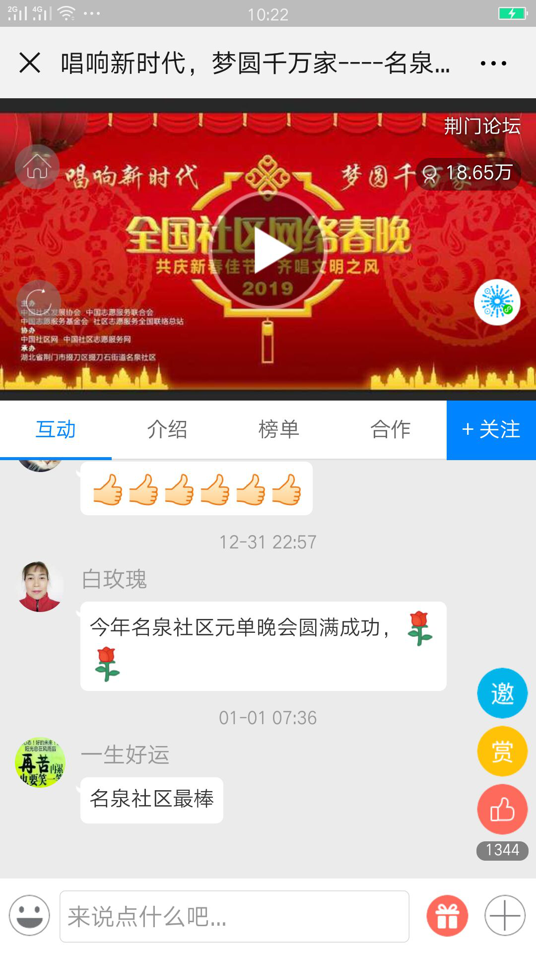 为丰富居民群众精神文化生活,名泉社区依托“我们的节日”开展文化进万家活动,在辞旧迎新之际,特举办“唱响新时代,梦圆千万家”为主题的2019年全国社区网络春晚,为社区居民送上一场文化盛宴。