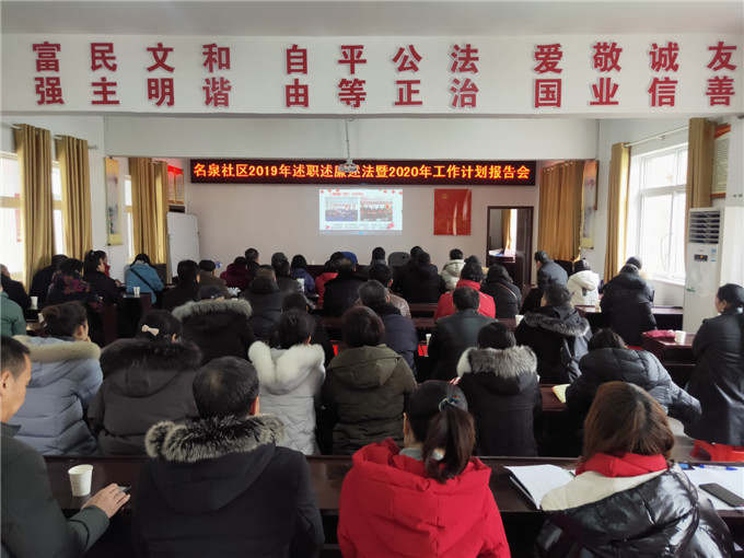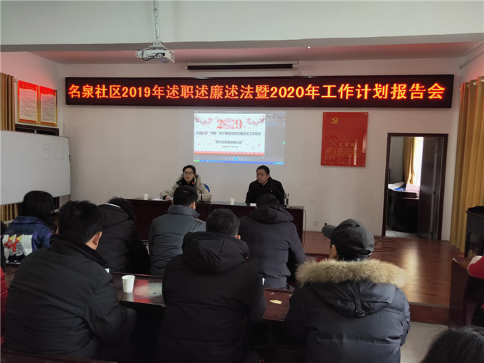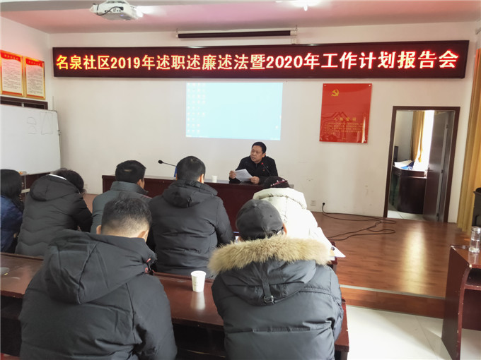 1月7日,名泉社区召开2019年述职述廉述法暨2020年工作计划报告会,会上街道党委副书记秦昵昵对此次考核作指导性讲话,与会党员、居民观看了2019年述职述廉述法工作报告课件,社区书记毛永家汇报2020年工作计划并现场征集与会人员的意见和建议,最后参会人员对社区“班子”集体及个人进行测评,作出定性评价。