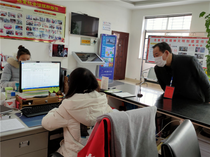 1月27日上午,市政协副主席陈前华、市政协副秘书长刘漪、区委常委纪委书记胡爱玲一行到名泉社区检查指导新型冠状病毒感染的肺炎疫情防控工作情况,听取了社区疫情防控管控工作汇报及宣传情况,重点了解了社区对返乡人员摸排、跟踪情况,并针对目前的疫情程度提出了指导性的工作建议。掇刀石街道党委副书记、主任陈旭陪同。