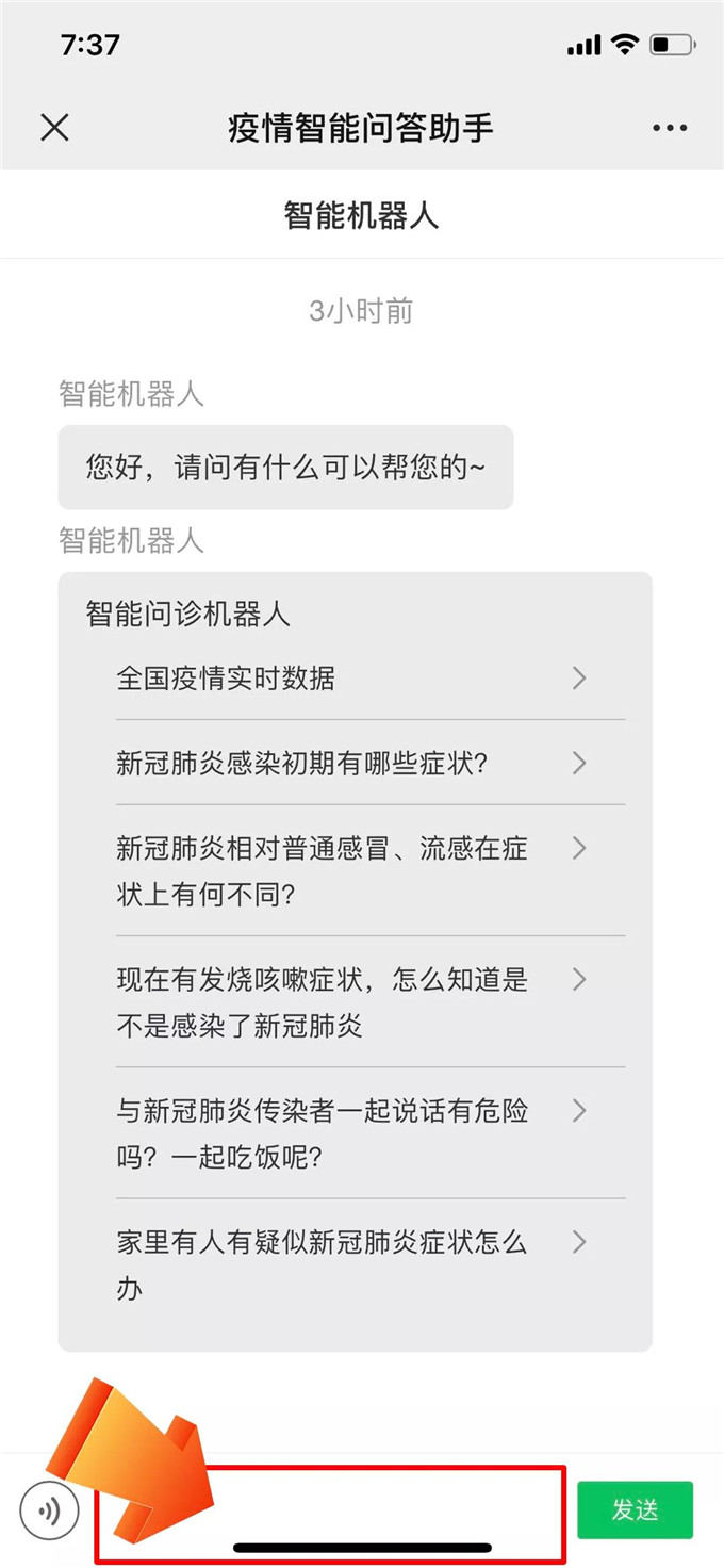 1、关注“荆门市人民政府”微信公众号(jingmengov),进入公众号主页面,点击手机页面右下方“疫情问答”按钮,进入疫情智能问答页面。对话框里输入问题,即可开启。