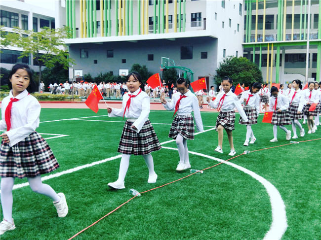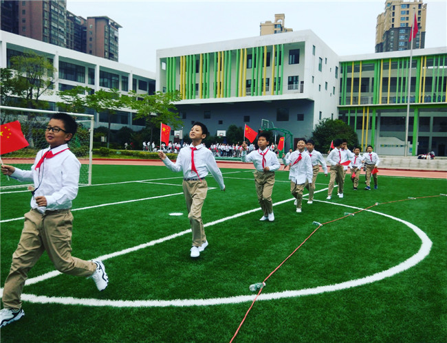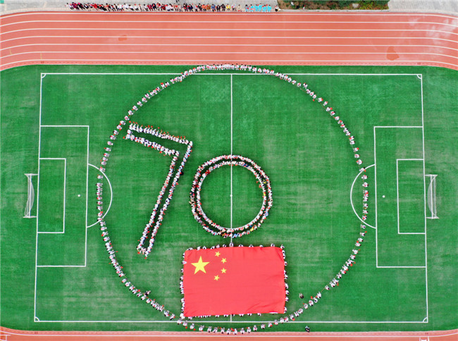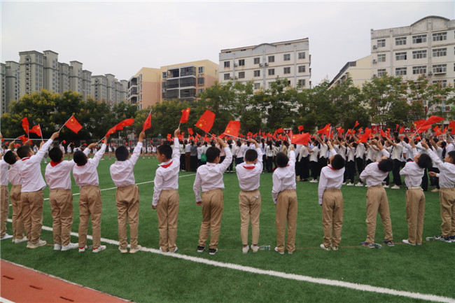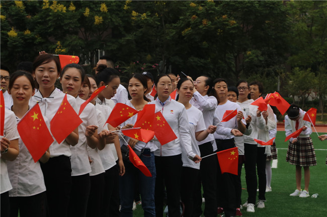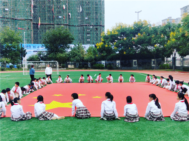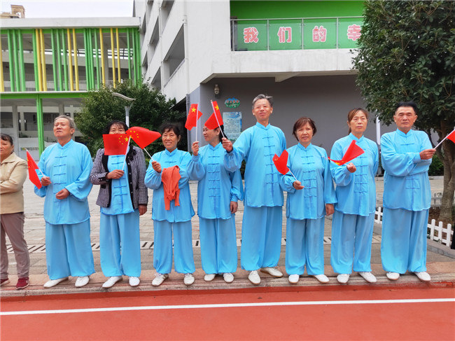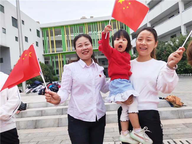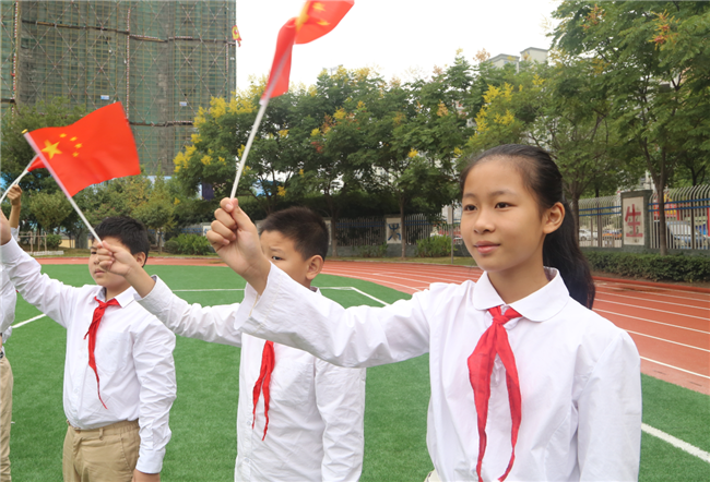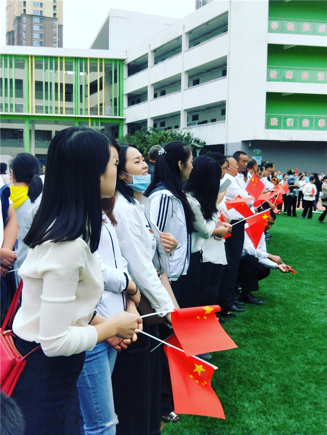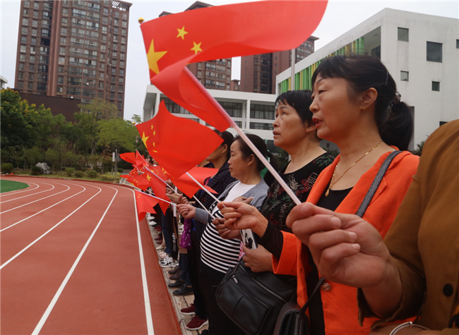 19日上午9时,随着《我和我的祖国》优美的旋律声响起时,来自名泉社区“大党委”成员单位党员、辖区居民、名泉小学的学生等500余人,纷纷从名泉小学操场的四周有序入场,他们挥舞着手中的小国旗,整齐排列成“70”、拉成圆圈的形状,共同用深情的演唱诉说着对祖国母亲的热爱。在音乐最后,所有人面向天空挥舞手中的小国旗,欢呼声响彻云霄,将此次“70年·我的国·我的家”快闪活动推向高潮。