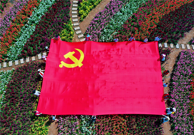 党旗在圣境花谷飘扬