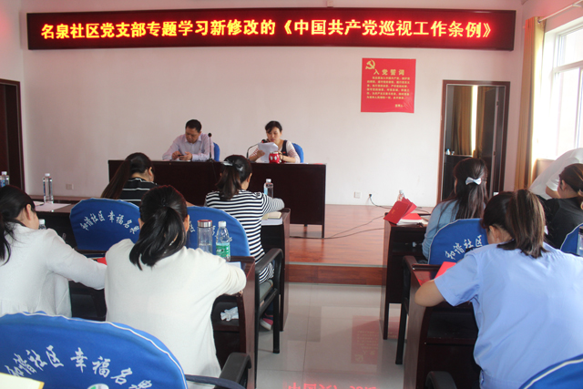 集中学习结束后,社区党支部书记毛永家围绕新修改的《中国共产党巡视工作条例》为与会党员上党课,要求各位党员准确把握《条例》新精神新要求,加强自身的学习,把学习《条例》作为“两学一做”学习教育的重要内容,进一步提高自学接受巡查监督、配合支持巡查工作的意识,全面推进从严治党向基层延伸。
