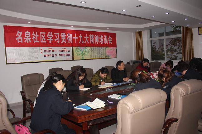 11月29日,名泉社区在社区党支部书记毛永家的领导下,认真学习了党的十九大精神,会上,社区“两委”、网格员一一发言,交流学习十九大精神的心得,并纷纷表态要有责任有义务将十九大精神传达到居民群众中去,会上学习培训贯彻十九大精神。最后,经过“两委”讨论,一致同意成立以网格单位,退休老党员、老干部、党员网格员为成员的宣讲小组,进网格、进小区、进楼栋,将十九大精神在名泉社区家喻户晓。