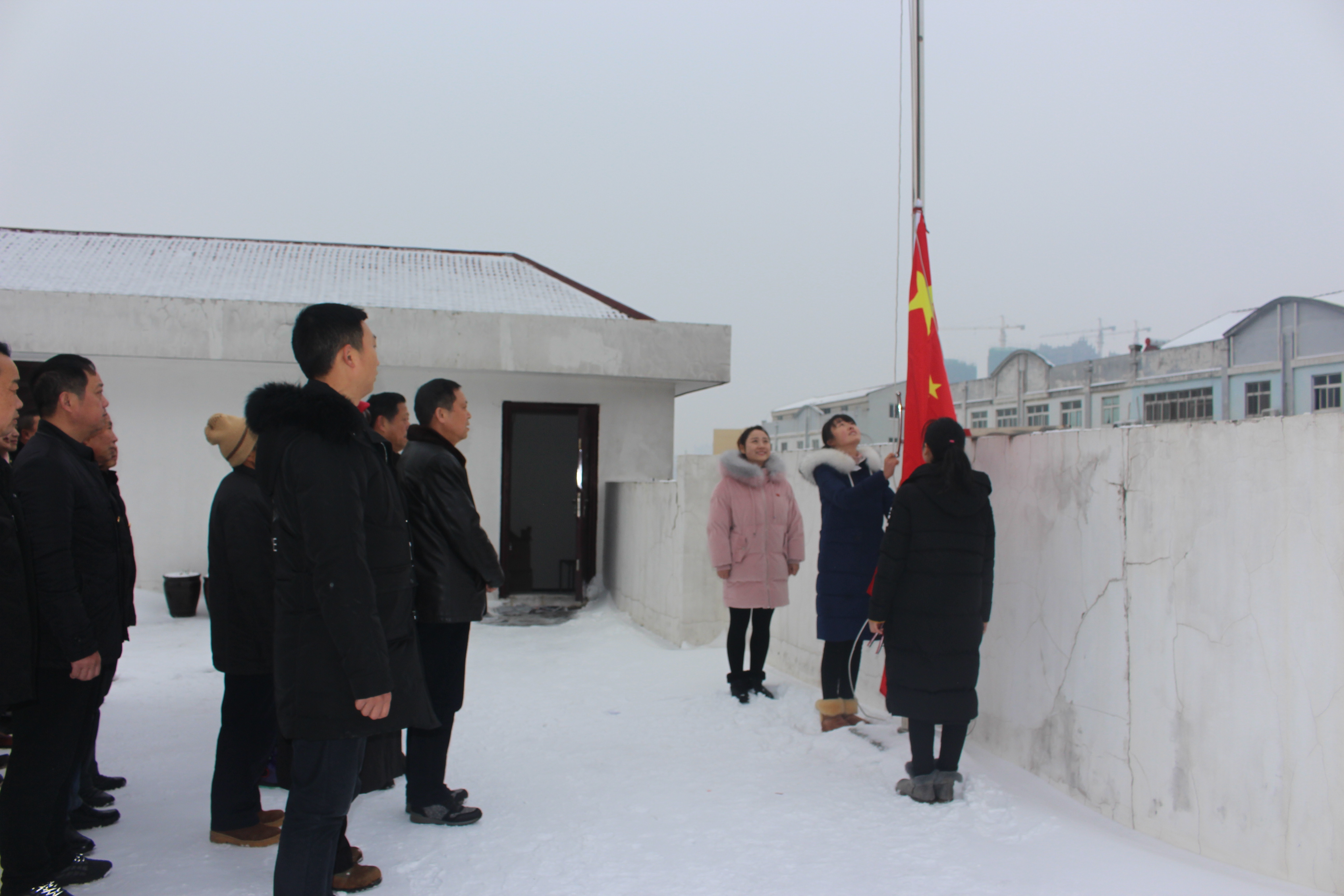 升国旗、奏国歌、重温入党誓词、诵读党章,在庄严的国歌声中,全体党员迎着风雪举行升旗仪式。名泉社区书记毛永家同志带领全体党员重温入党誓词,诵读党章,学习十九大精神和习近平总书记关于“‘纠正’四风不能止步,作风建设永远在路上”重要指示精神,学习习近平新时代中国特色社会主义经济思想。通报2017年度党员积分和2017年下半年“五星”党员评定情况。