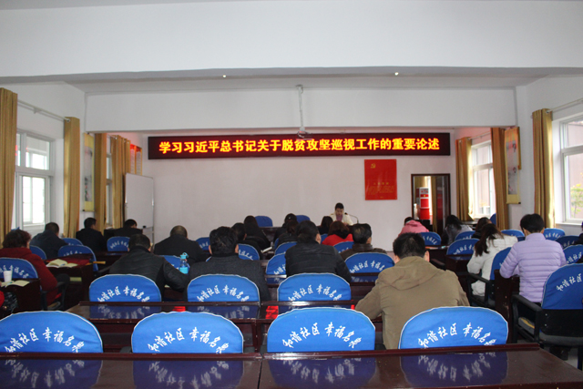 活动中,与会党员集中学习了习近平总书记关于脱贫攻坚巡视工作的重要论述;《习近平谈治国理政》第二卷《强化巡视监督,发挥从严治党利器作用》篇目;党中央、国务院《关于打赢脱贫攻坚战的决定》《关于打赢脱贫攻坚战三年行动的指导意见》;中央第二巡视组对湖北省开展脱贫攻坚专项巡视工作动员会精神;市委办《关于进一步激励广大干部新时代新担当新作为的实施意见》等,要求党员提高政治站位,切实把思想和行动统一到中央决策部署和省委、市委、区委工作要求上来,自觉落实精准扶贫精准脱贫各项任务。正值社区“两委”换届选举之际,社区党支部再次组织各党员学习了换届选举实施步骤和精神,希望各党员继续关心、支持、参与到社区“两委”换届工作,推动换届工作圆满完成。