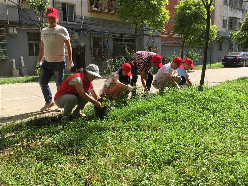 会后,两个支部的党员开展了创城志愿服务活动,对辖区绿化带的杂草进行清理,美化社区环境。