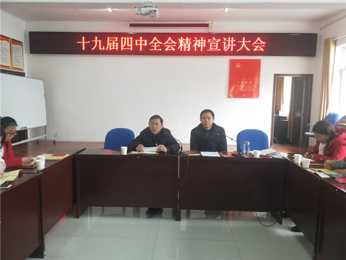 街道党委副书记、主任陈旭同志从四个方面为与会党员解读十九届四中全会精神,结合事例通过通俗易懂的话语,提高了党员对十九届四中全会精神的了解。