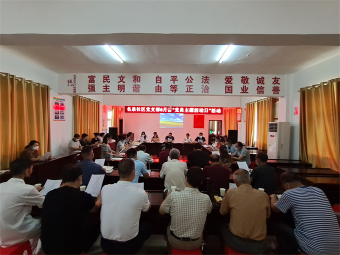 6月8日,名泉社区党支部开展6月份“党员主题活动日”活动,组织党员扎实开展党史学习教育。