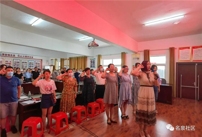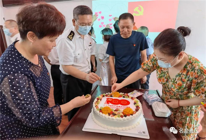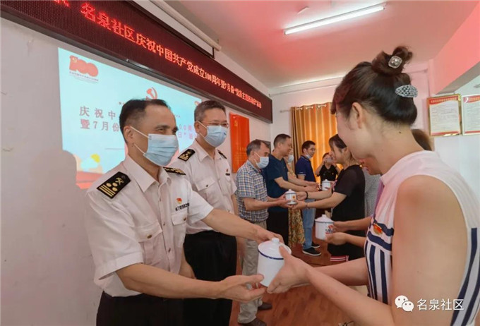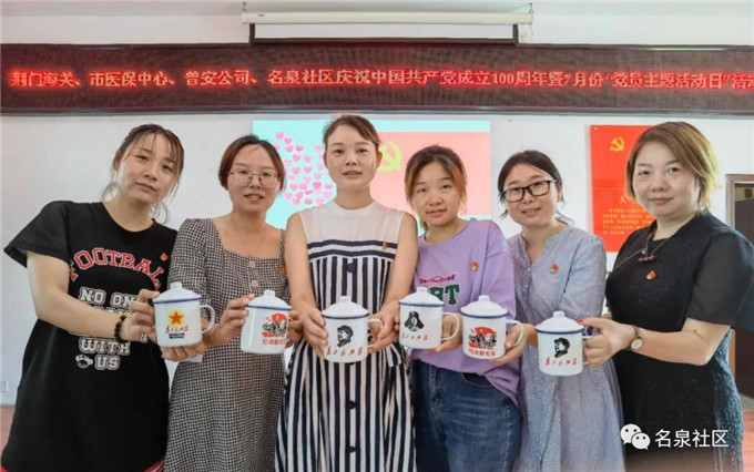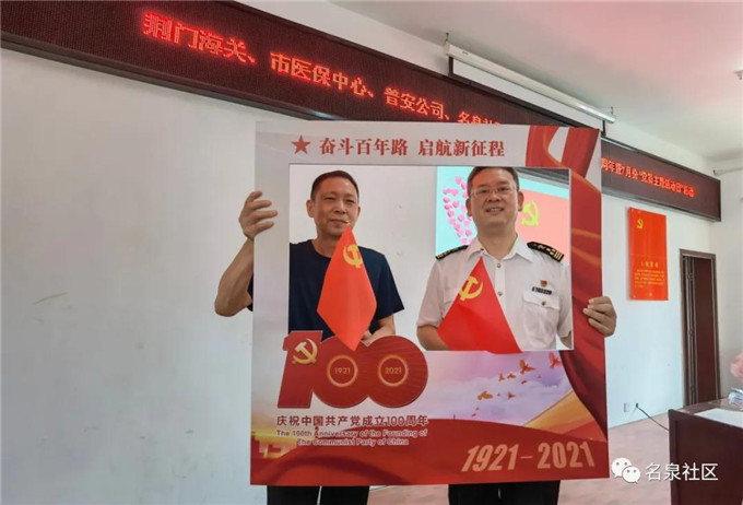 6月30日,名泉社区联合荆门海关、市医保中心、普安公司开展庆祝中国共产党成立100周年暨7月份“党员主题活动日”活动,共有70余名党员及入党积极分子参加。活动以“上一堂党课,唱一支红歌,送一件老物件、过一次政治生日,与党同框”为主题,“五个一”献礼建党百年。