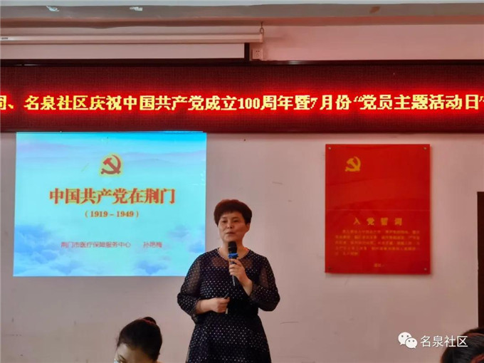 活动中,下沉名泉社区党员荆门市医疗保障服务中心孙艳梅同志从中共荆门地方组织的建立及其艰辛成长、荆门民主政权的建立及发展、共产党在荆门领导的武装斗争等3个方面,用朴实生动的语言给党员们带来了《中国共产党在荆门,中国共产党为什么行?》的一堂党课,让党员们了解属于荆门的红色记忆,铭记历史,鉴往知来。