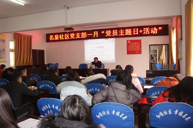 1月5日,名泉社区党支部开展一月“党员主题日+”活动,组织党员开展集中学习,学习《习近平总书记系列重要讲话读本》(2016年版)第三章《新的历史条件下治国理政总方略》,学习市委书记别必雄在中国共产党荆门市第八次代表大会上的报告内容,要求各位党员要加强自身方面的学习,不仅要参加社区组织的集体学习,在日常生活中也要注重个人方面的学习,通过学习来充实自己,更好地服务居民。