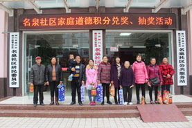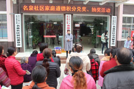 18日,名泉社区开展积分制管理第四次兑奖、抽奖活动,对积分优胜户进行物品兑换,并对其他家庭积分户进行现场抽奖,激励居民的自治热情,引导更多辖区居民从点滴做起,以家庭和谐、人际和谐促进社区和谐,深化文明和谐社区建设。